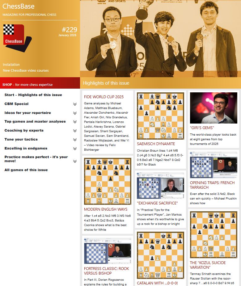 This ChessBase 229 Magazine comes as download with 6 files,list of all